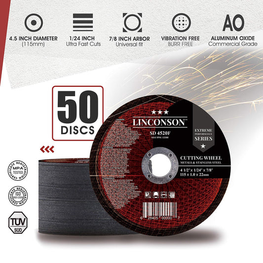 50 Pack 4.5 Inch Cut off Wheel for Metal & Stainless Steel Used on Angle Grinder 4.5”X1/24”X7/8" Flat Disc (SD 4520F)