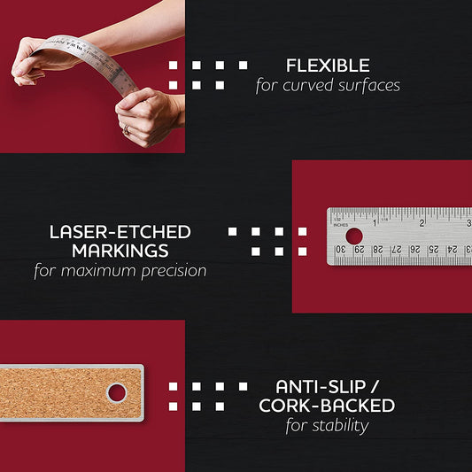 Metal Ruler 18 Inch - Stainless Steel Cork Back Metal Ruler - Premium Steel Straight Edge 18 Inch Metal Ruler - Flexible Stainless Steel Ruler - Imperial and Metric Ruler