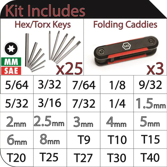 Sae/Metric Folding Hex Key Set with Bonus Torx Set (3-Piece)